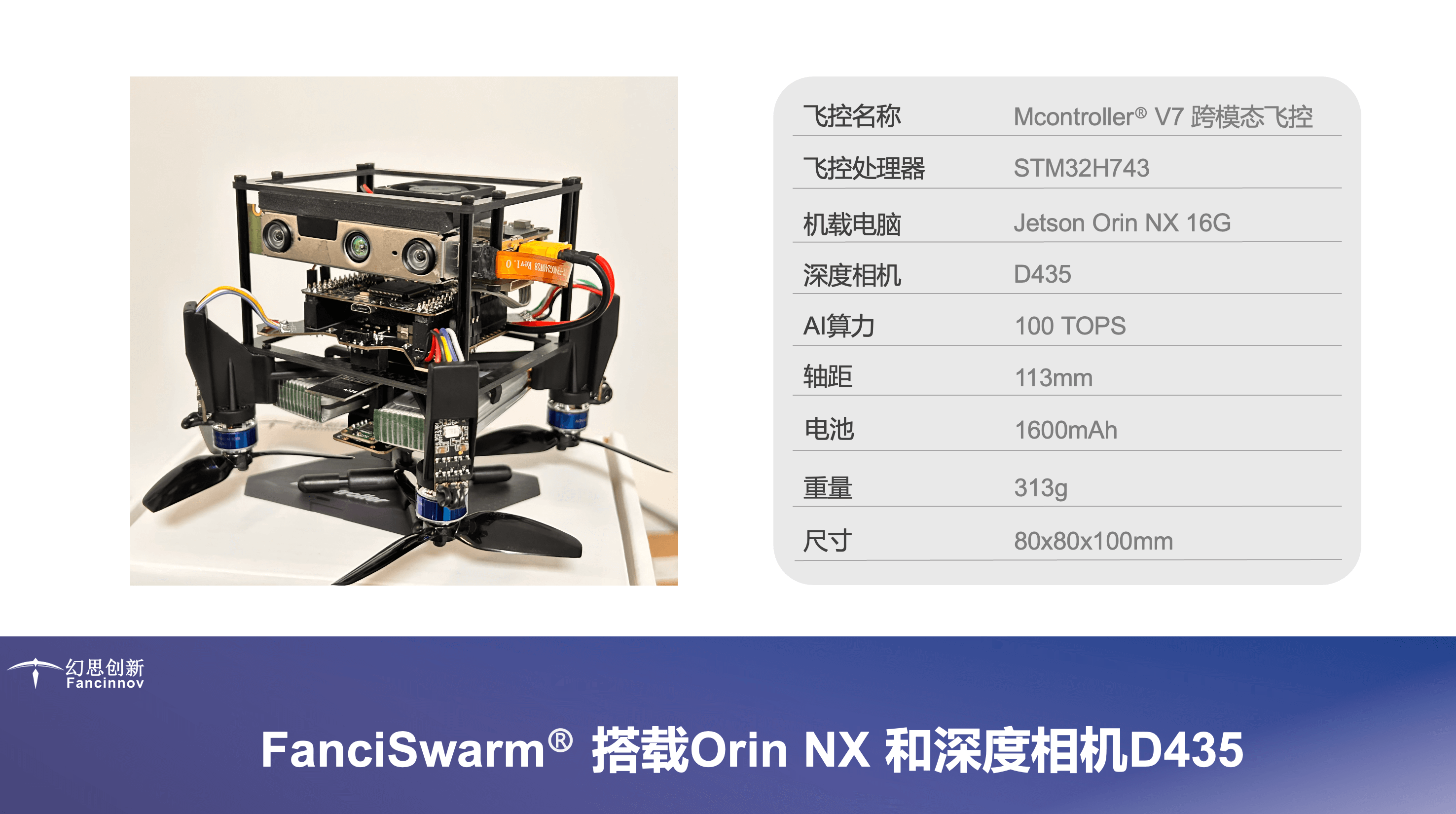 是什么?FanciSwarm® 深度视觉无人机套件是 FanciSwarm® 微型集群无人机技术的延伸,通过创新的机载电脑支架系统,实现与 NVIDIA Jetson Orin 系列的无缝集成,支持搭载 Orin NX 和 Orin Nano,赋予无人机强大的计算能力。