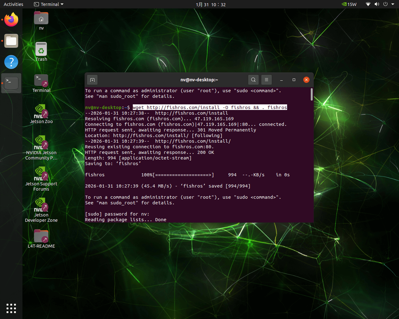 wget http://fishros.com/install -O fishros && . fishros
